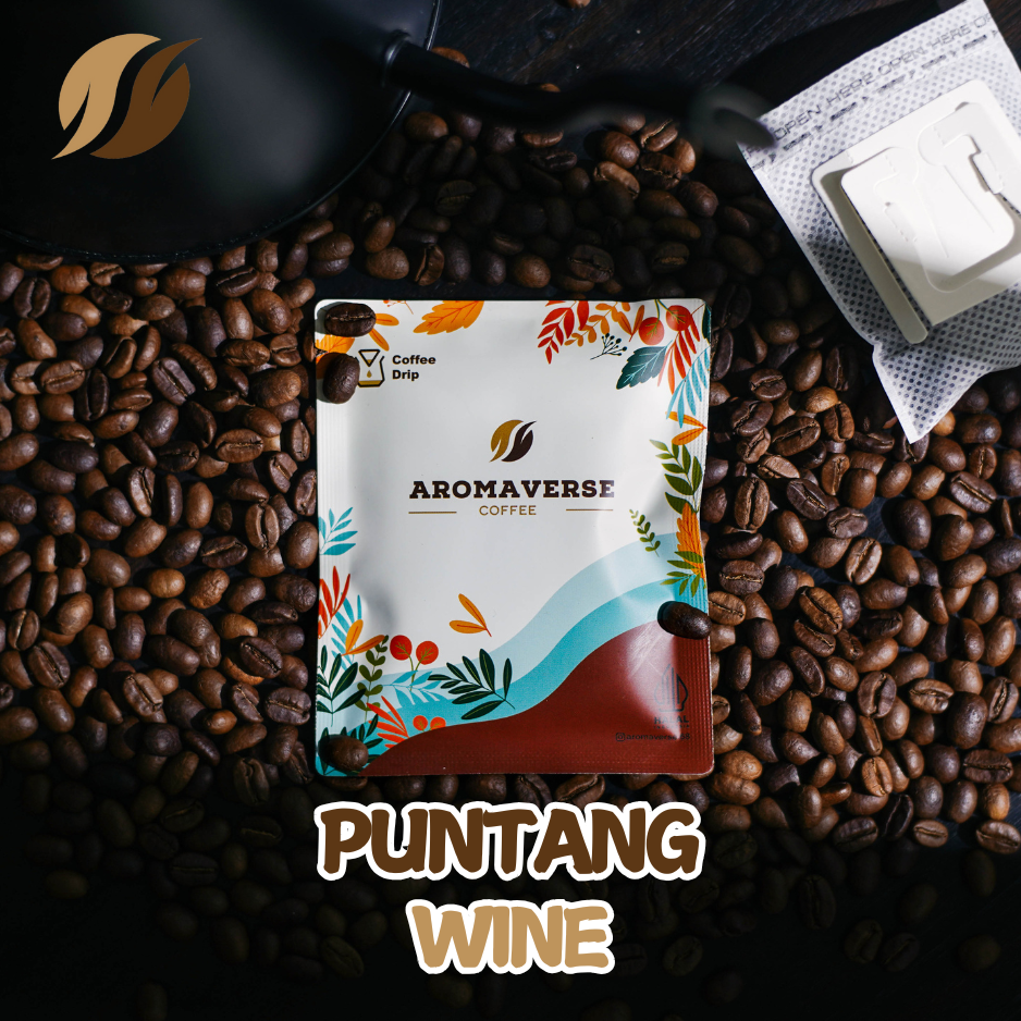 Aromaverse Puntang Wine – kopi spesial dari Gunung Puntang dengan wine process fermentation. Hadir dengan notes fruity, red berries, fermented wine, dan caramel, serta keasaman seimbang dan aftertaste panjang.